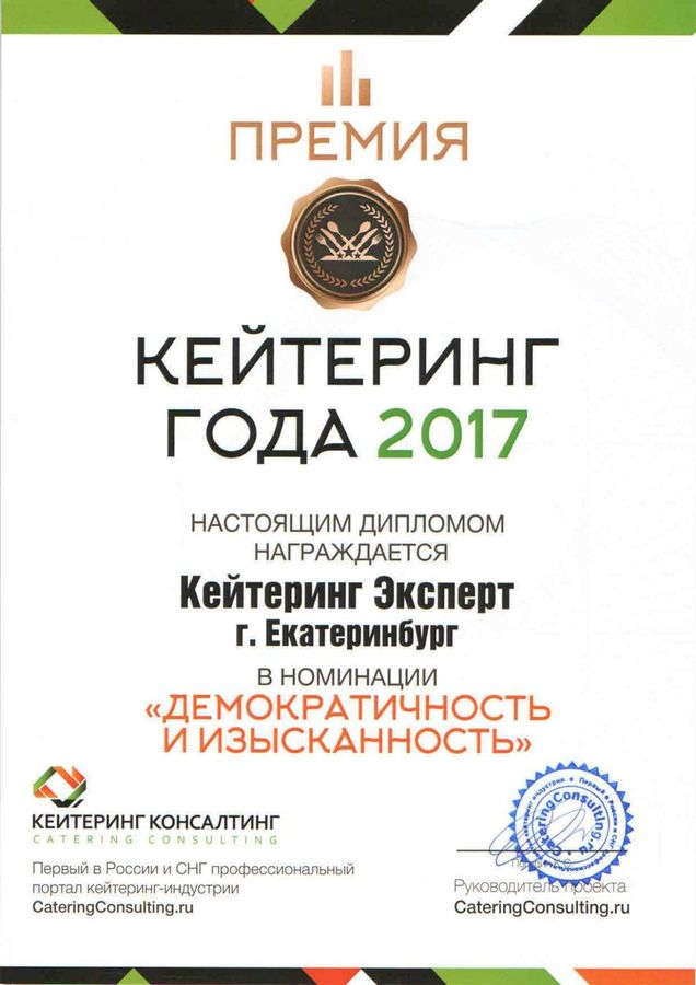 Наша компания побеждает в номинациях на ежегодной премии "Кейтеринг Года"! Важно, что наша работа и вклад в развитие кейтеринга высоко оцениваются профессионалами международного уровня.