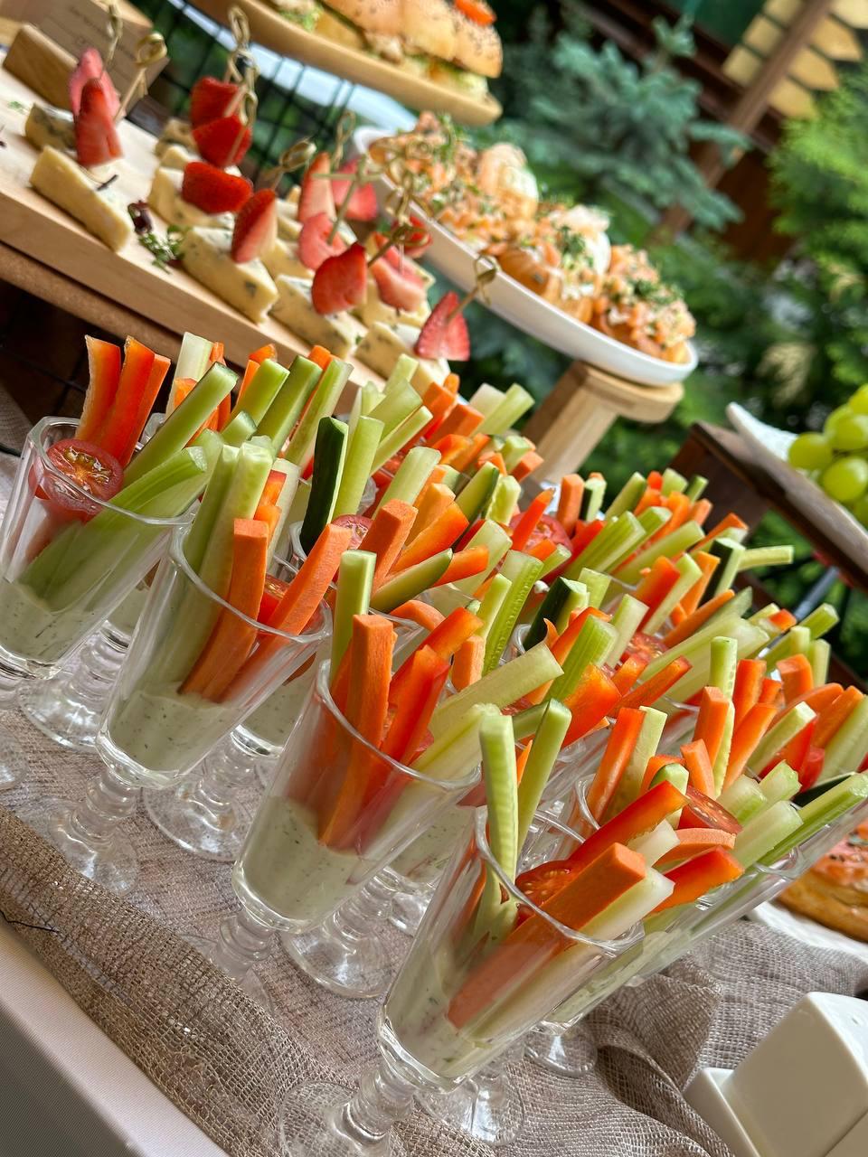 Ну и, конечно, следует не забывать о возможностях площадки: например, если мы говорим о фуршете летом под открытым небом, то стоит избегать в меню быстро портящихся или тающих закусок. Зимой же, наоборот, стоит сделать акцент на сытных вариантах.