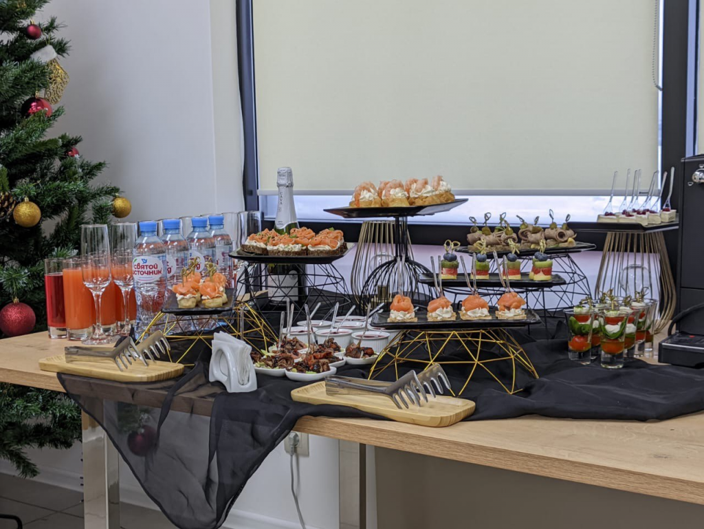 Поэтому мы искренне рекомендуем уделить должное внимание выбору подрядчика, ведь перерыв должен подарить отдых и приятные эмоции гостям! Мы с большим удовольствием поможем вам с организовать фуршет или банкет, взяв все заботы на себя!