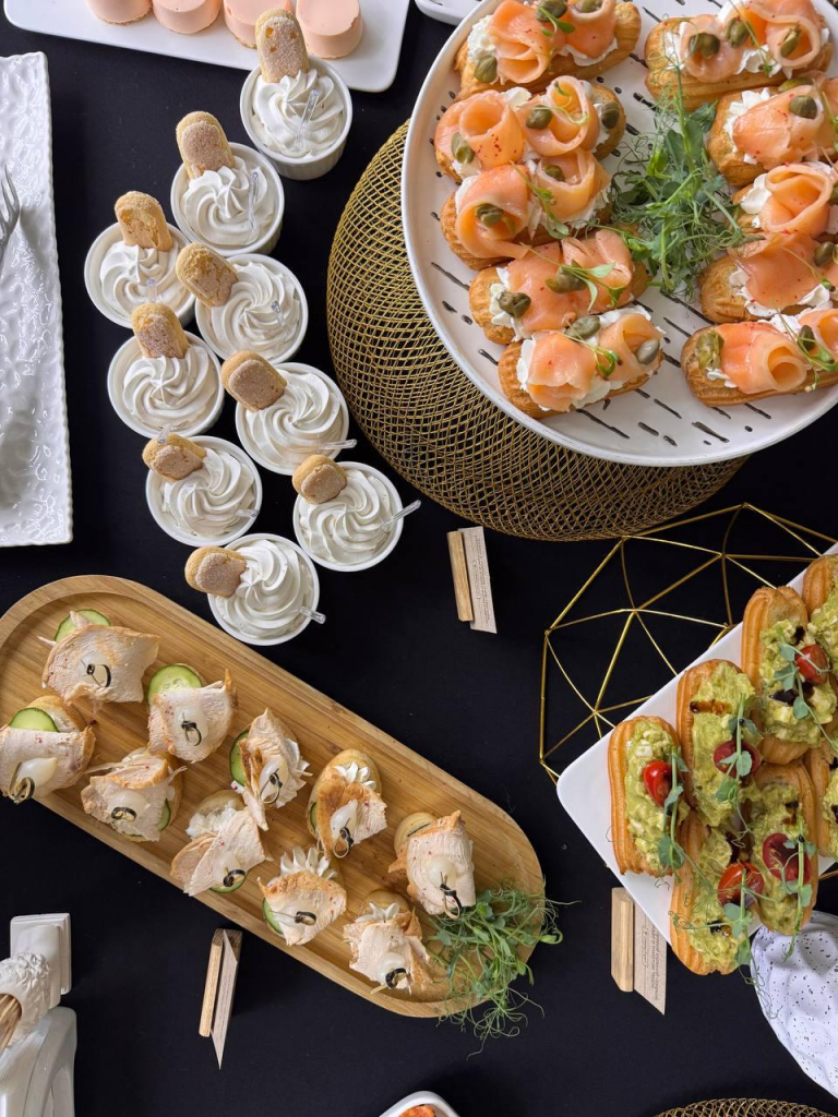 Следующий этап — подбор кейтеринговой компании. Меню фуршета должно учитывать предпочтения участников: мясные, рыбные и вегетарианские блюда, закуски, десерты, а также безалкогольные и алкогольные напитки. Важно продумать подачу блюд, чтобы они оставались свежими и аппетитными на протяжении всего мероприятия. В зависимости от времени года и площадки ассортимент рекомендованных закусок так же будет отличаться. Менеджер нашей компании обязательно расскажет вам обо всех нюансах и посоветует наилучший вариант!