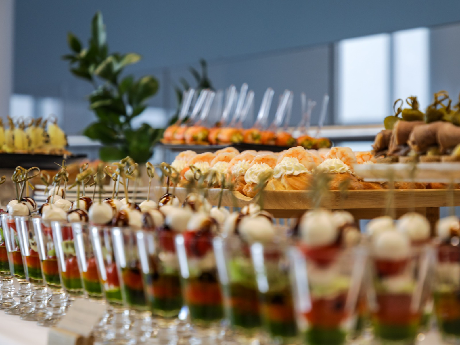 Оптимальное количество еды на гостя для банкета с продолжительностью 5-6 часов составляет 1000-1100 грамм. Не забывайте о напитках! Несмотря на то, что за столом чаще присутствуют алкоголь, на каждого следует предусмотреть по 1 литру безалкогольных напитков.