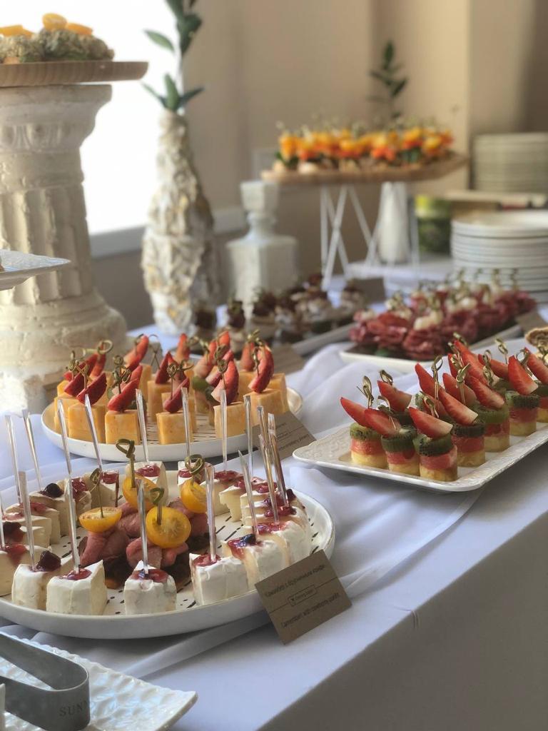 Один из самых популярных поводов — фуршет на свадьбу. Такой формат идеально подходит для выездных церемоний, загородных праздников и камерных торжеств. Вместо формального застолья гости свободно перемещаются, общаются, наслаждаются закусками и напитками. Это особенно удобно при большом количестве приглашённых или когда хочется сделать акцент на живом общении и лёгкости мероприятия.