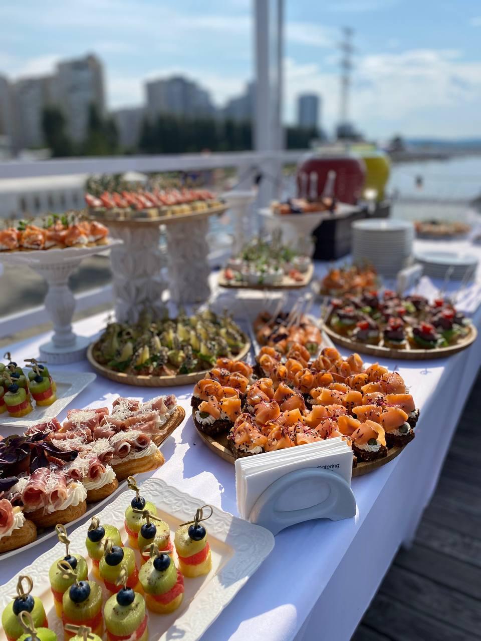 Дополнительно на каждое мероприятие обязательно привозится весь текстиль, включая скатерти и текстильные салфетки для гостей, и декор в выбранном стиле. У нас предложено несколько вариантов оформления, и вы можете выбрать любой понравившийся! Важно отметить, что фуршетная линия и банкетный стол располагают разным количеством свободного пространства для декора, но в обоих случаях ваше событие будет выглядеть стильно!