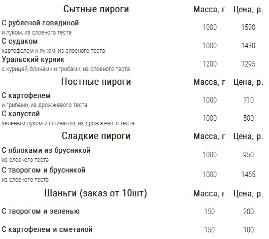 Ассортимент найдет отклик у каждого: в меню представлены не только сытные и сладкие пироги, но и постные варианты. Каждый из них придуман с большой любовью, а при проработке начинок мы вдохновились дарами Урала.